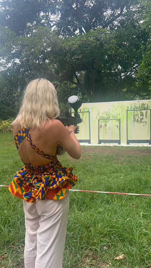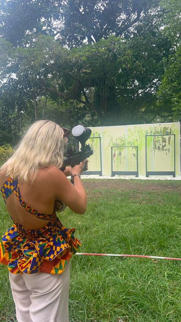 While at the botanical gardens, I saw a man walking around with a GUN! This obviously panicked me, and I asked the guide ‘why does that man have a gun?’ He said ‘oh no it’s a game!’, the man with the gun came over and explained to me I pay 20 cedes to play, and the aim is to shoot 10 bottles off the stand that was ahead of me.