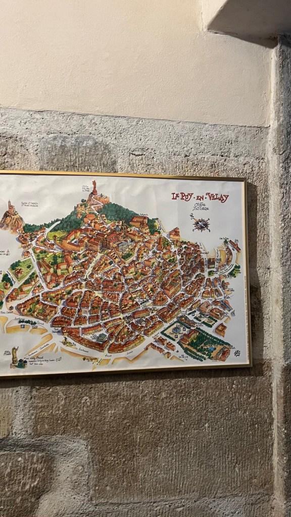 As we lace up our hiking boots and prepare to take our first steps along this ancient path, we are filled with a sense of anticipation and wonder. The Via Podensis, also known as the Le Puy Camino, or the GR65, is renowned for its beauty and tranquility, offering people a chance to disconnect from the hustle and bustle of everyday life and reconnect with nature and themselves. We arrived in Le Puy en Velay yesterday and used today to settle in, pack our bags, buy some last minute things and go to the cathedral to meet some other pilgrims over a glass of juice/wine mix.