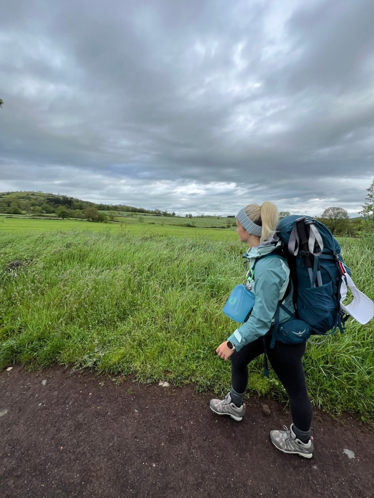 Following the pilgrims’ blessings, we set out through the open gate in the cathedral floor around 8am. The initial kilometers were a steep climb in cold, rainy weather. Having done a long hike like this before, at a similar time of year – it was my goal to have my backpack as light as possible. However the weather forecast had other plans, and I thankfully added a puffer jacket, additional long sleeves and a waterproof jacket to my backpack.