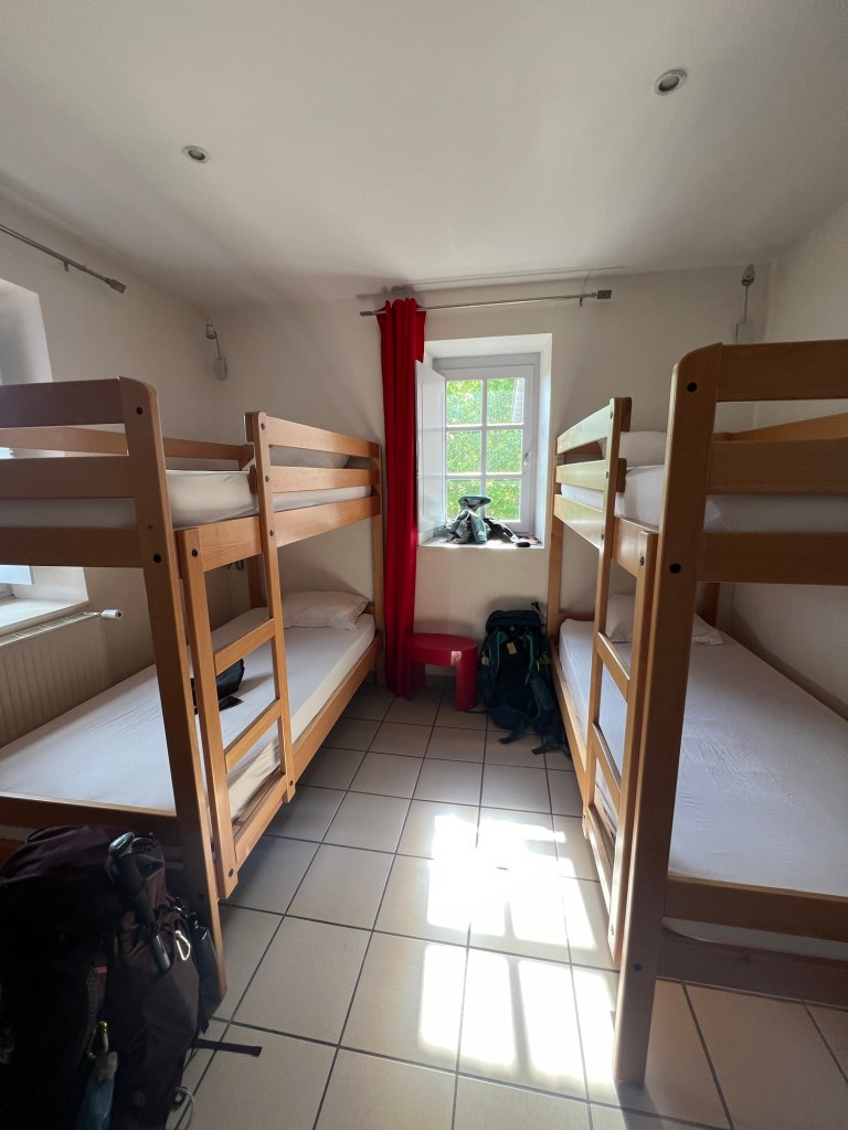 Dinner at the Gîte was a lentil soup, sausage, potatoes, cheese, and dessert. We sat at a table with three fellow Australians from Hobart and Victoria, sharing stories as we reflected on the day’s challenges and triumphs.