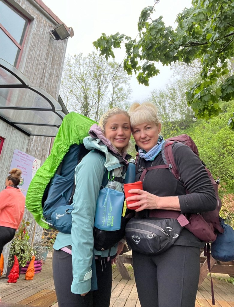Unfortunately, the path was in poor condition due to the weather, forcing us to take a detour to avoid the worst of it. The descent into Monistrol-d’Allier was rocky and slippery, where we even had to navigate a flooded path turned river crossing.