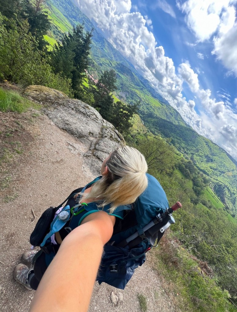 I could tell my mum was struggling with the incline, also facing jet lag coming all the way from Australia, so for a while I even carried her pack on the front which looking back I cannot believe I managed.