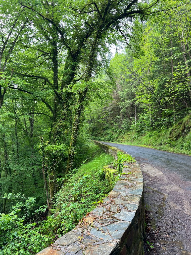 The day from Saint-Chély-d’Aubrac to Espalion had challenges and surprises. Waking up after a tough day, we dreaded the thought of squeezing our feet into our wet boots. Thankfully they had dried overnight from a heated cabinet and were ready for another day of trekking.