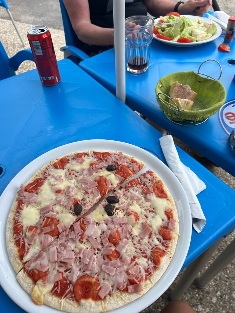 Our Gite for the night was located slightly off the GR65, and our host offered to pick us up in his retro car that he was very proud of. While we waited for him, I ordered a pizza at the snack bar.