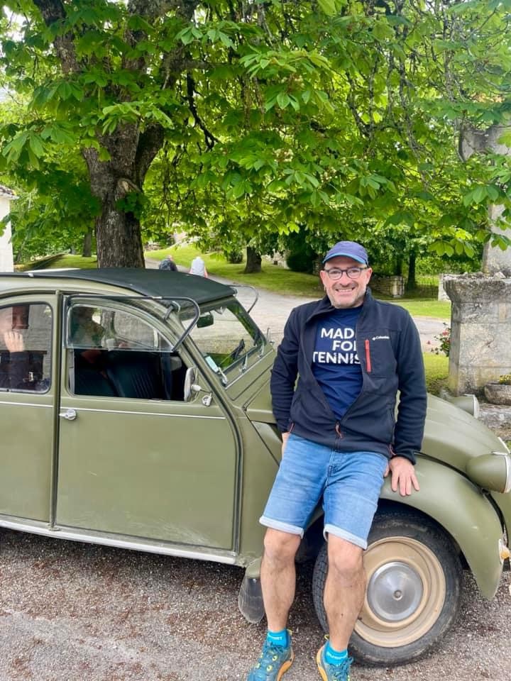 It was there that we met Darn, another retired pilgrim from George, South Africa, who gave us good advice for the path ahead. We also met Thomas, who had started his pilgrimage from his home in the Black Forest Germany, already covering hundreds of kilometers. We chatted away in the warm sunshine while waiting for our delightful Gîte owner, David, to collect us in his 1974 Citroen. With four people and three loaded backpacks in the small car, it was a miracle we made it up into the hills to our beautiful home for the night.