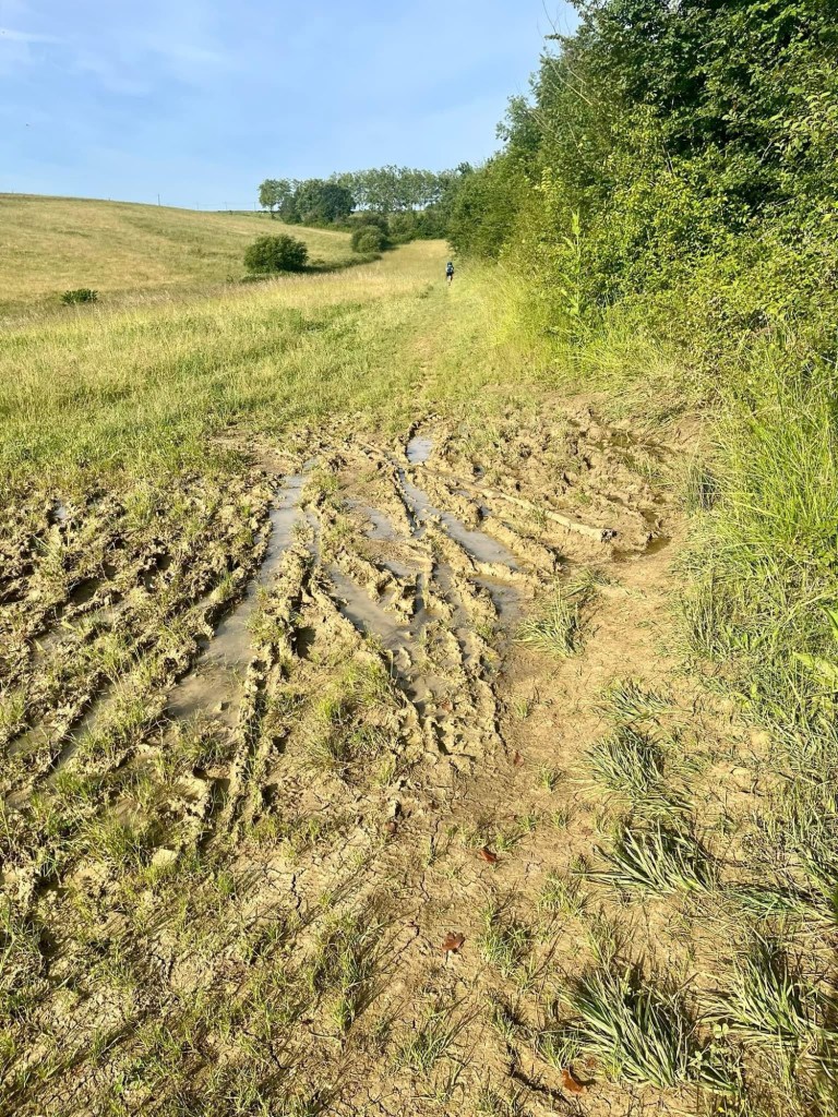Our travels today took us on tar roads, farm tracks, and paths through fields, lush countryside, and beautiful small towns. There was still some mud in places, but this was easy to avoid.