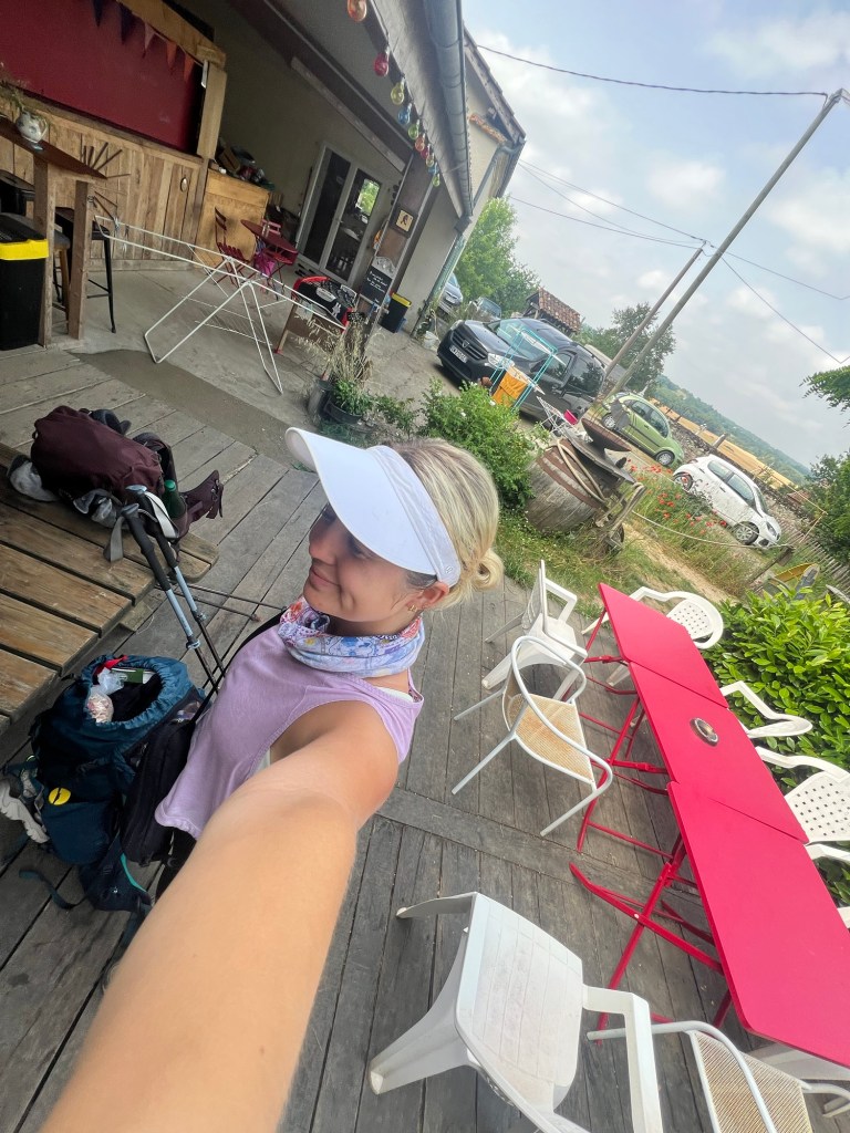 After about 9kms of easy hiking, we came upon a lovely self-service café in a local’s backyard, based on an honesty payment system. There was an excellent selection of freshly baked almond cakes, boiled eggs, drinks, nuts, fresh fruit, tea, and coffee. These gestures and trust really capture the essence and spirit of this ancient pilgrims’ way, and that of the people who find themselves on this path. Like yesterday, the drinking water was outside the cemetery gate, which got me thinking 🤔 about why the occupants of a cemetery would need drinking water. Maybe a research question for when I get home?