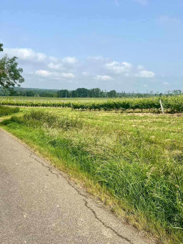 It was after 8 am by the time we left Montreal, and the day was already heating up. We spent the first 5 kms chatting with some ladies from Australia and relishing the sheer pleasure of the track. Once again, we were surrounded by fields of grain and vineyards stretching as far as the eye could see.