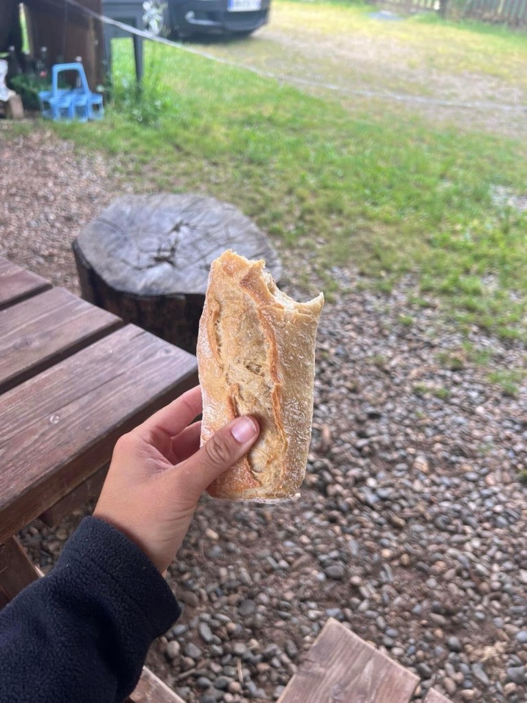 Before we knew it, we came upon a lovely donation rest area and enjoyed a drink along with our bakery goodies before setting off again. I had the baguette that I bought from the bakery, and it genuinely was the best bread I had ever had in my life.