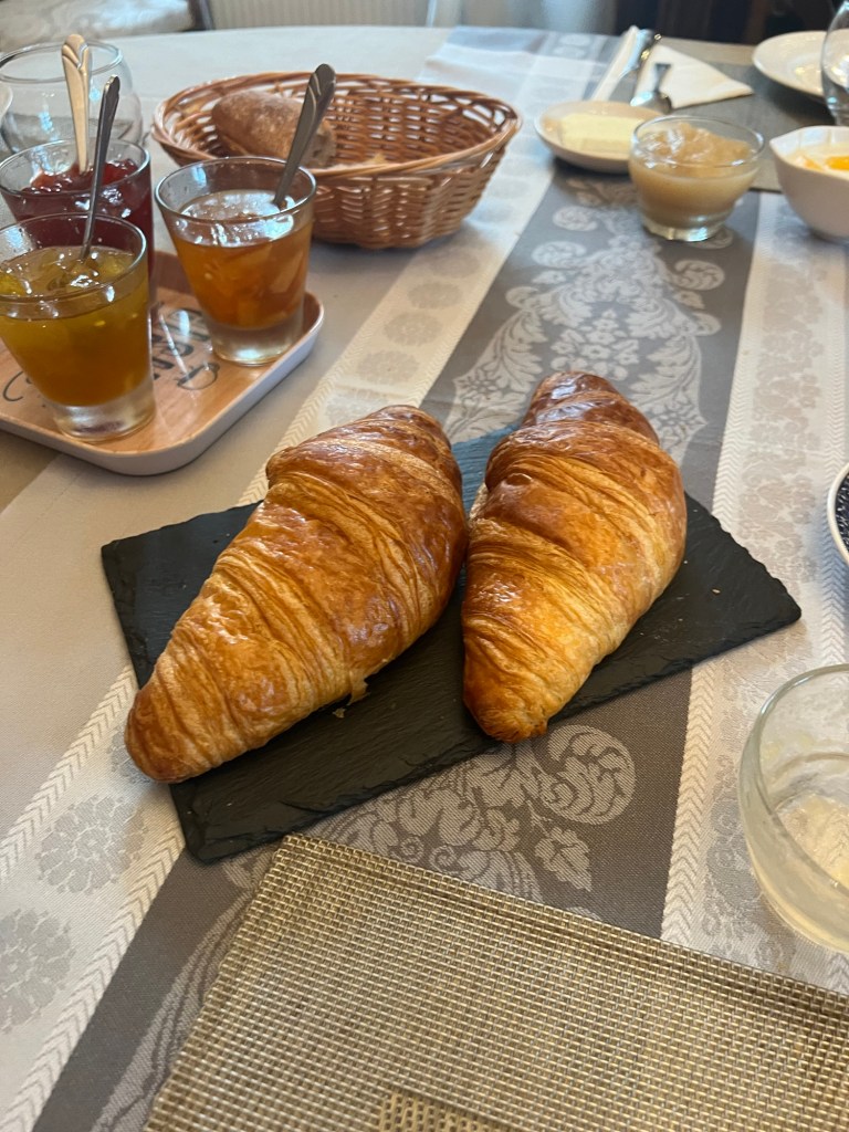 After a very comfortable night, we enjoyed a delicious breakfast of yoghurt, apricots, apple puree, cheese, jams, and freshly baked baguette in the beautiful dining room. A French businessman with a little black sports car joined us.